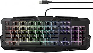 Gshield Teclado Gamer Semimecânico com Fio 1,5m Padrão ABNT2 + Teclas Multimídia e Iluminação Backlight Amarela, Tech Fury