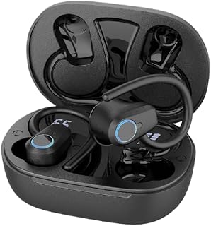 • Fone de Ouvido Sem Fio Bluetooth 5.3 Premium Compatível com iPhone e Android, Microfone, Redução de Ruído, Graves Potentes, Controle Touch, Ideal para Academia e Corrida